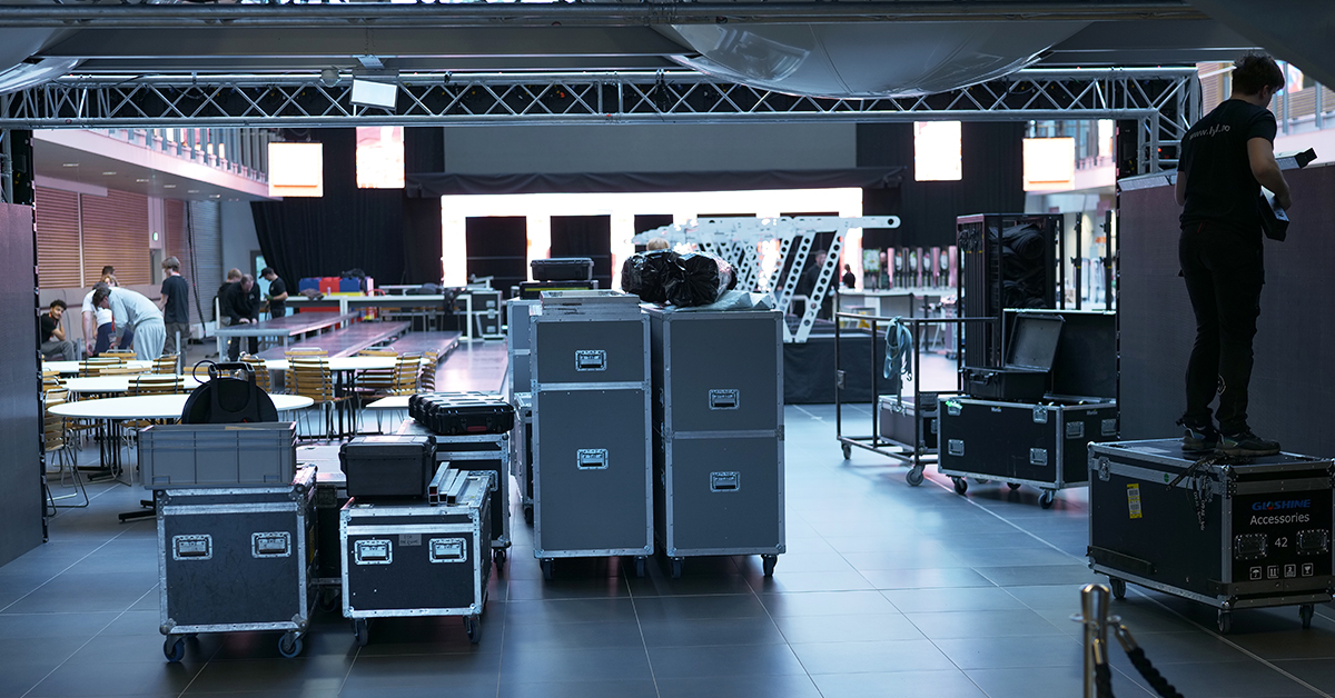 Han og resten av crewet er nesten ferdig med årets rigg, der leveransen består av blant annet fullskala lyd- og lysanlegg, LED-skjermer i ulike størrelser, AV- og sceneutstyr, kameraer og bildemiksere til livestreaming, samt TV-er til lagenes baser i kjelleren.