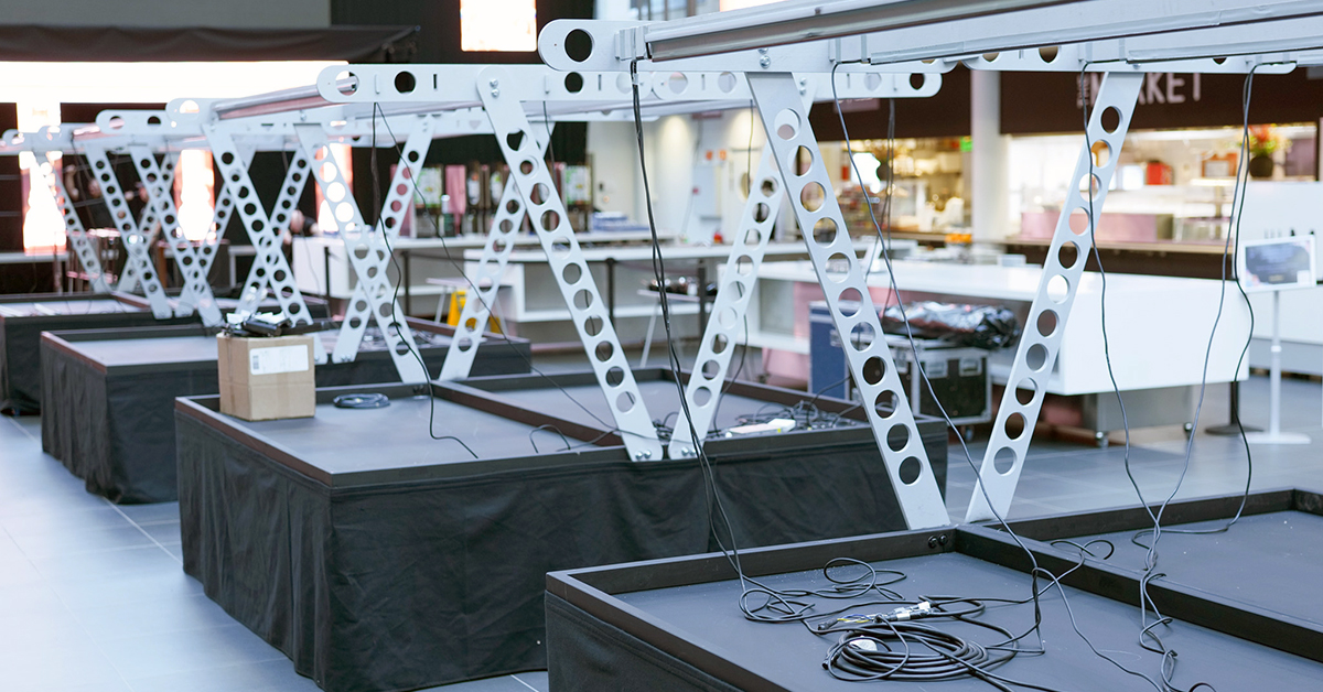 Selve lokalet som benyttes er stort og det er høyt under taket, noe som setter krav og premisser til hvordan oppsettet på det hele blir.