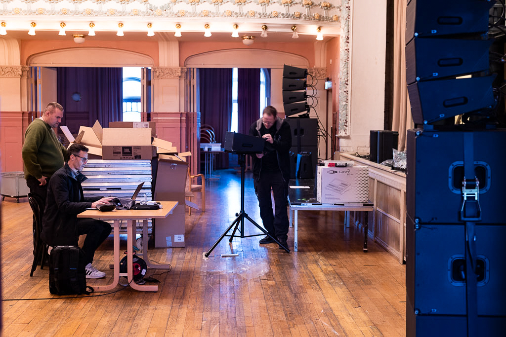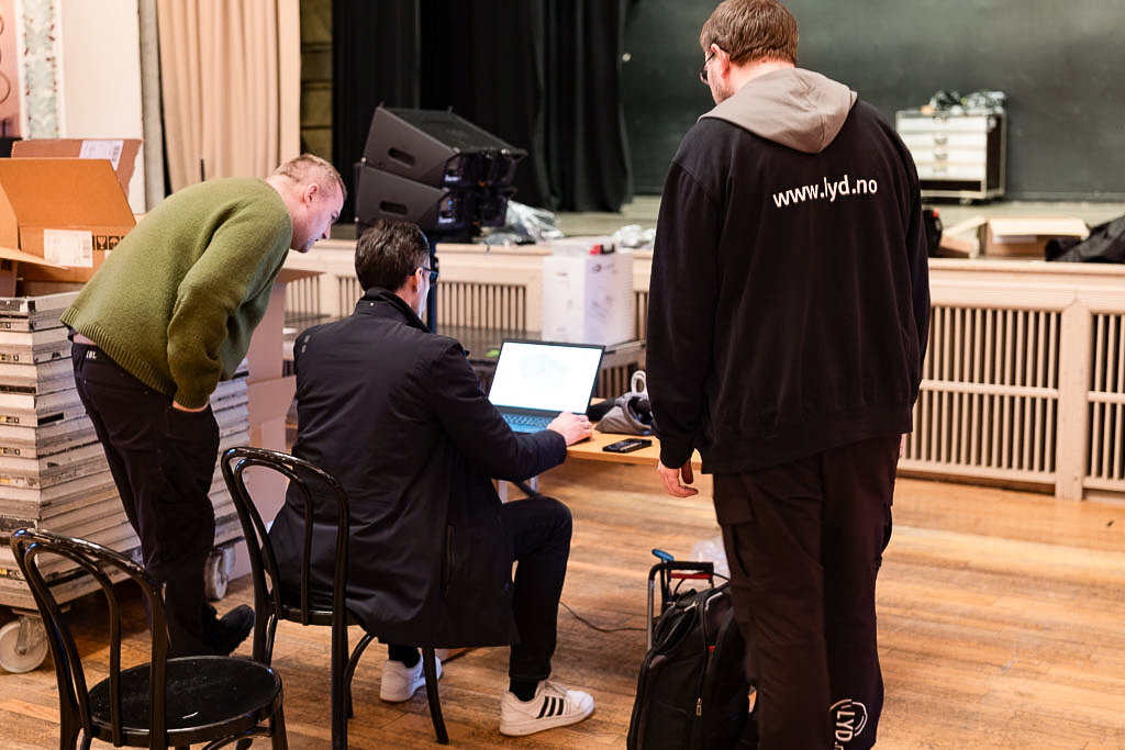 - Vi gjør beregninger og finstiller anlegget ut fra lokalets utforming og egenskaper. Det er noen hensyn å ta i dette ærverdige lokalet, men det går fint. Snart er alt dimensjonert og klart for alle slags arrangementer, forteller Jan-Stefan Hansen fra Captech Lydrommet i Oslo.